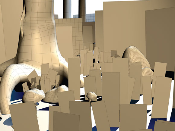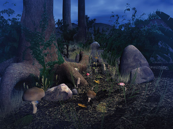 Objekten zum Einsatz. Polygonobjekte und texturierte Ebenen mit Alphakanal.
