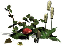 kleinere Pflanzen wie Farne, Klee und Moos,